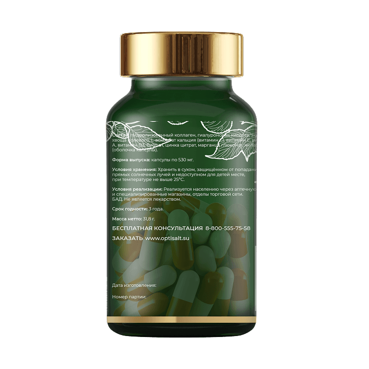 Показания к применению: восполнение дефицита коллагена, гиалуроновой кислоты, микроэлементов, антиоксидантов и витаминов. Профилактика возникновения дефицита коллагена, гиалуроновой кислоты, микроэлементов и витаминов для обеспечения нормального функционального состояния костной, мышечной, суставной, хрящевой ткани, поддержания эластичности и молодости кожи, для обеспечения здорового состояния волос и ногтей.