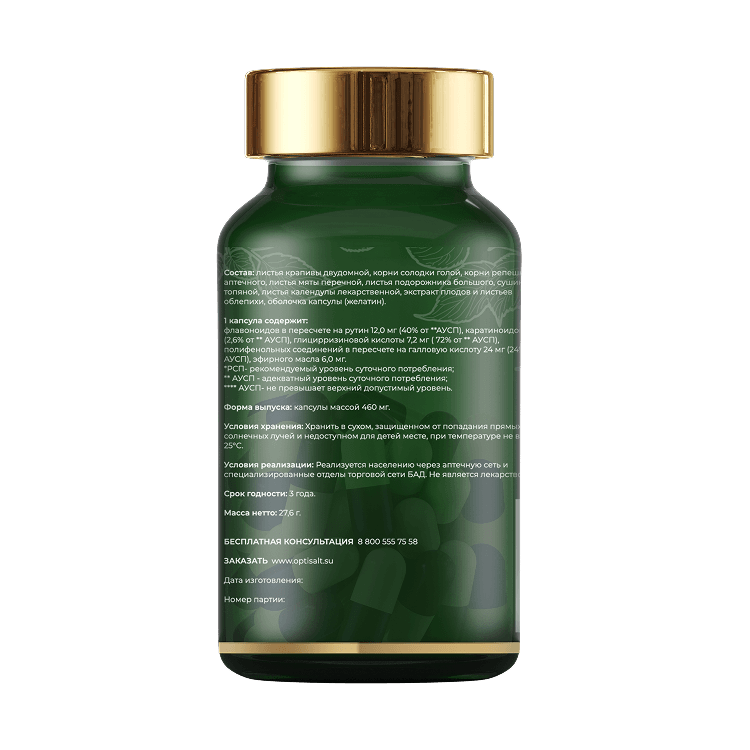 Состав: плоды облепихи, лист крапивы двудомной, лист мяты перечной, корень и корневище солодки голой, репешок, листья подорожника большого, трава сушеницы топяной, цветки ноготков.