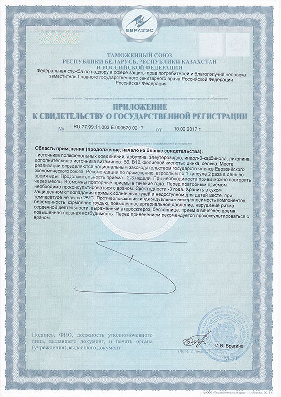 Индол-3-карбидолоказывает мощное антиоксидантное действие, блокирует клеточный цикл развития опухолевых клеток, предотвращает онкогенное действие вируса папиллома человека 16, 18 типов на шейку матки (у женщин), обеспечивает защиту от онкологических заболеваний репродуктивных органов мужчины (в частности, рака простаты). Применяется с целью профилактики онкологических заболеваний репродуктивных органов.