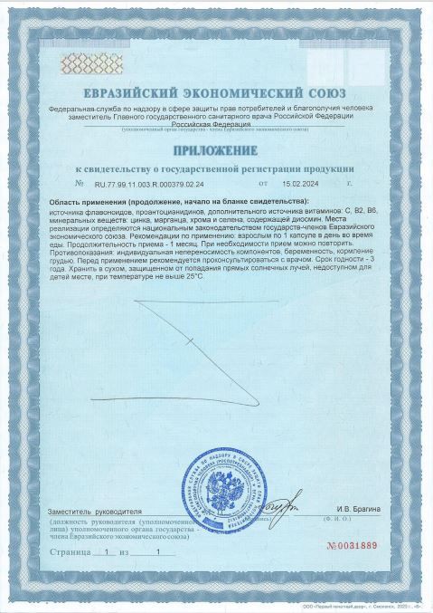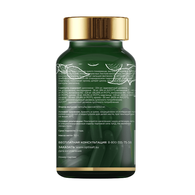 Натуральный комплекс флебо и ангиопротекторов, корректоров капиллярной микроциркуляции крови, природных антиоксидантов, витаминов и микроэлементов.